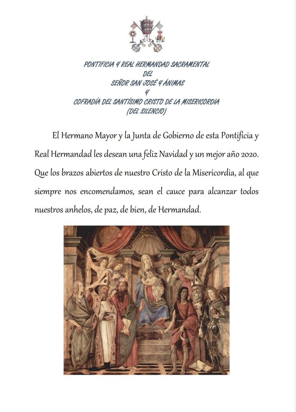 El Hermano Mayor y la Junta de Gobierno de esta Pontificia y Real Hermandad les desean una[…]