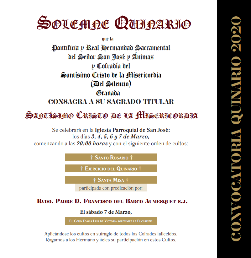 Solemne Quinario que la Pontifica y Real Hermandad Sacramental del Señor San José y Ánimas y Cofradía[…]