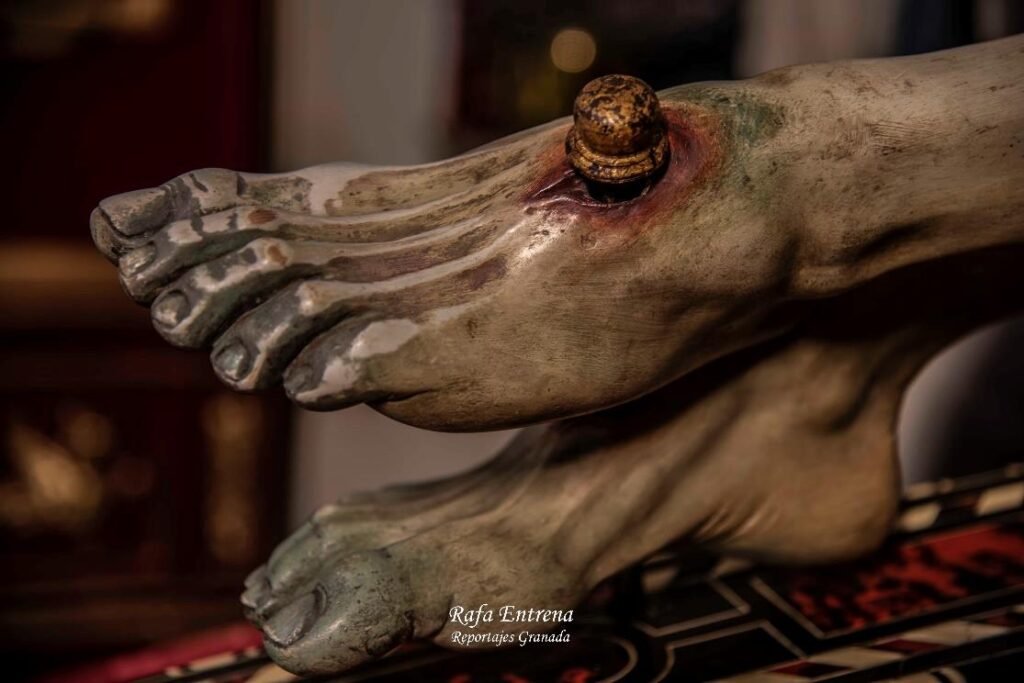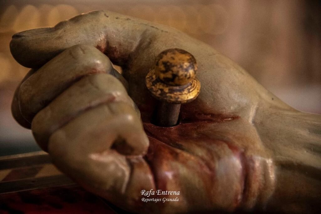 Te damos gracias, Santísimo Cristo de la Misericordia por la llaga de tu mano Izquierda. Herida que acoge y sostiene. Te pedimos, hoy, por las gentes de la ciudad de Granada. Enséñanos a ser testigos silenciosos de tu profunda mirada.