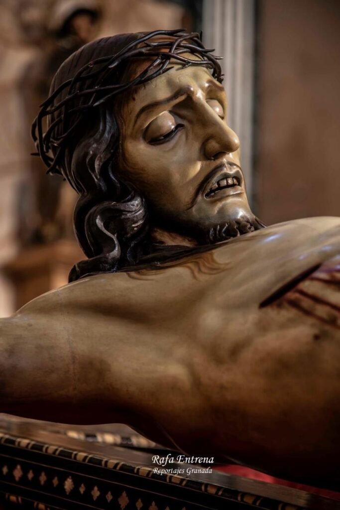 Santísimo Cristo de la Misericordia: Al contemplar tu cuerpo y recordar tu Pasión, hoy queremos darte gracias por tu promesa de esperanza más allá del sufrimiento o la muerte. Ayúdanos a contemplar la profundidad de la realidad, sabiendo que a cada paso de las calles del Albaicín, a cada paso de las calles de Granada, a cada paso que demos por este mundo, Tú sigues ahí, regalándonos tu Reino por doquier. Te pedimos una mirada profunda y misericordiosa, para reconocer, en el rostro del otro, tu presencia de amor infinito.
